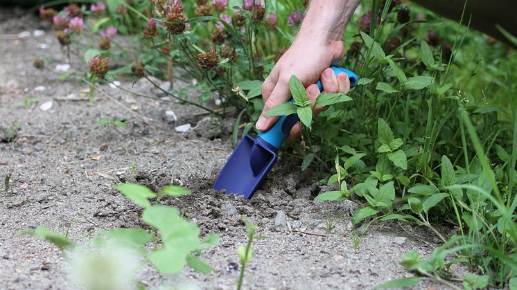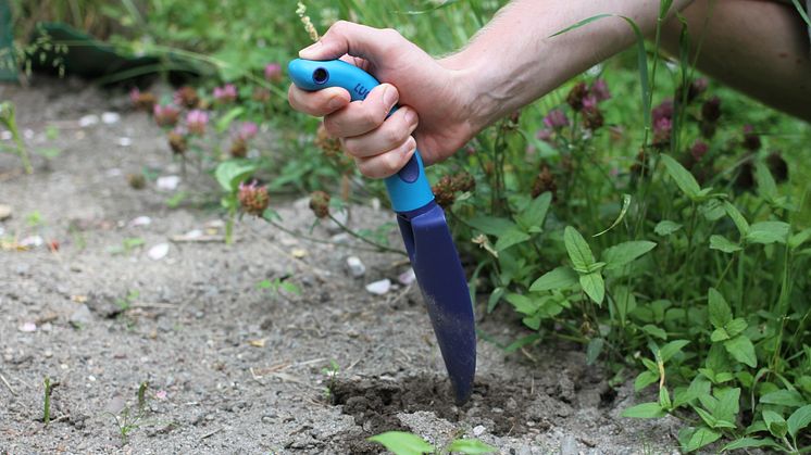 – Med våre hageredskaper vil vi avlaste håndleddene og minimere skader. Det er viktig at trykkpunktet er riktig på den ergonomiske ugressrenseren og plantespaden.