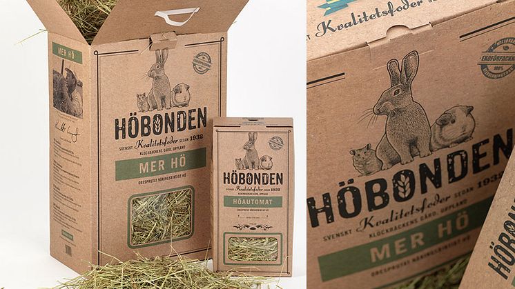 Nu kan Sveriges alla kaniner, marsvin och hamstrar få sitt foder i 100 % återvinningsbara wellförpackningar. Höbonden är företaget som med gården Klockbacken i Mälardalen som bas och miljötänkande som riktmärke har skippat plastpåsarna till förmån för ett smartare och mer uthålligt sätt att förpacka hö och halm.