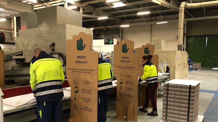 Et Smurfit Kappa-designteam brukte fagkunnskap og kreativitet til å raskt komme opp med et sett med praktiske og effektive produkter. De første produktene som ble lansert på en av Smurfit Kappa-fabrikkene i Frankrike, var skillevegger i bølgepapp myntet på bruk i ulike arbeidsmiljøer. Skilleveggene beskytter personer som jobber tett sammen, slik at de kan holde trygg avstand fra hverandre på arbeidsplassen.