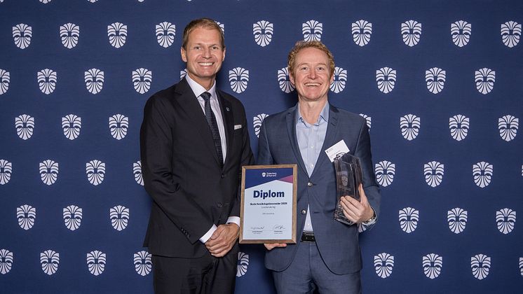 Kai-Erik Johannessen mottar prisen på vegen av DnB