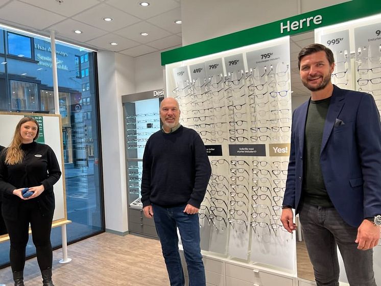 Optikerassistent Synne (t.v), Jostein Hågan (Blå Kors) og Henning Eriksen (Specsavers) .jpg