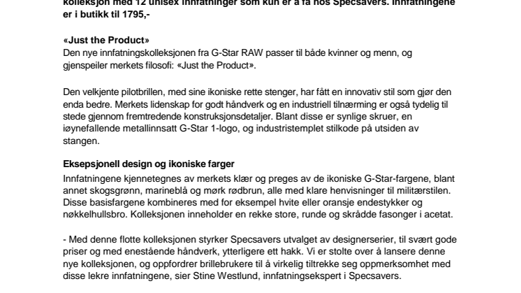 Den nye innfatningskolleksjonen fra G-Star RAW passer til både kvinner og menn, og gjenspeiler merkets filosofi: «Just the Product».