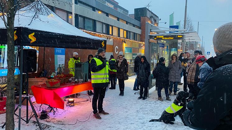 • Prisvinneren (i midten) på Grefsen verksted sammen med representanter fra Fagforbundet, Sporveiens største fagforening OSA, trikkesjef Birte Sjule, sporveissjef Cato Hellesjø og verkstedleder Jan Bøgh Andersen