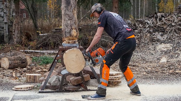 Rookie-atleten Iver Markus Sjømark i gang med TIMBERSPORTS®-grenen Stock Saw.