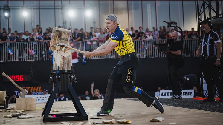 – Det var tøff motstand med skikkelig dyktige atleter. Men jeg hadde en god start på konkurransen i både Underhand Chop og en førsteplass i Stock Saw, og det får jeg ta med meg, sier Edvin Karlsson.