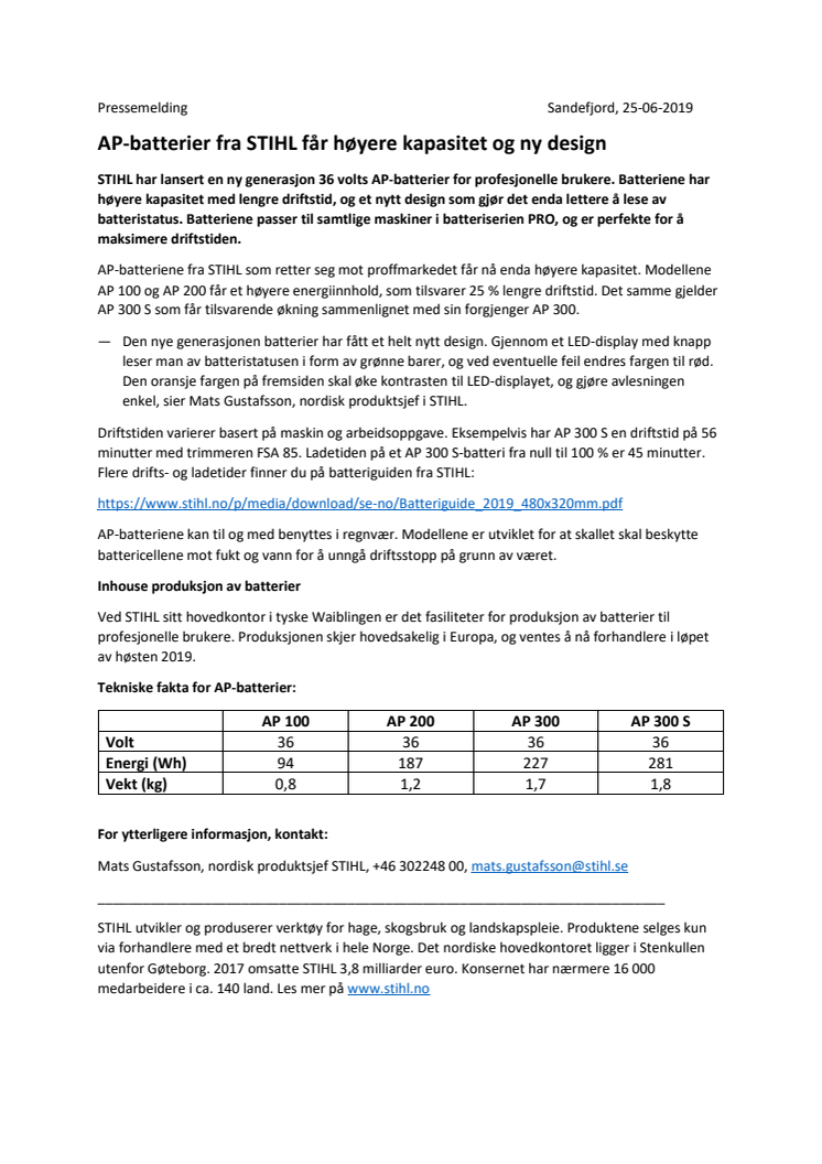 STIHL har lansert en ny generasjon 36 volts AP-batterier for profesjonelle brukere. Batteriene har høyere kapasitet med lengre driftstid, og et nytt design som gjør det enda lettere å lese av batteristatus. Batteriene passer til samtlige maskiner i batteriserien PRO, og er perfekte for å maksimere driftstiden.