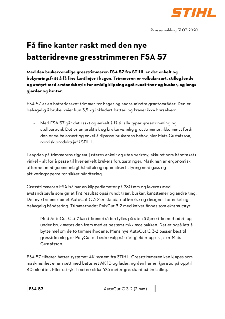 Få fine kanter raskt med den nye batteridrevne gresstrimmeren FSA 57