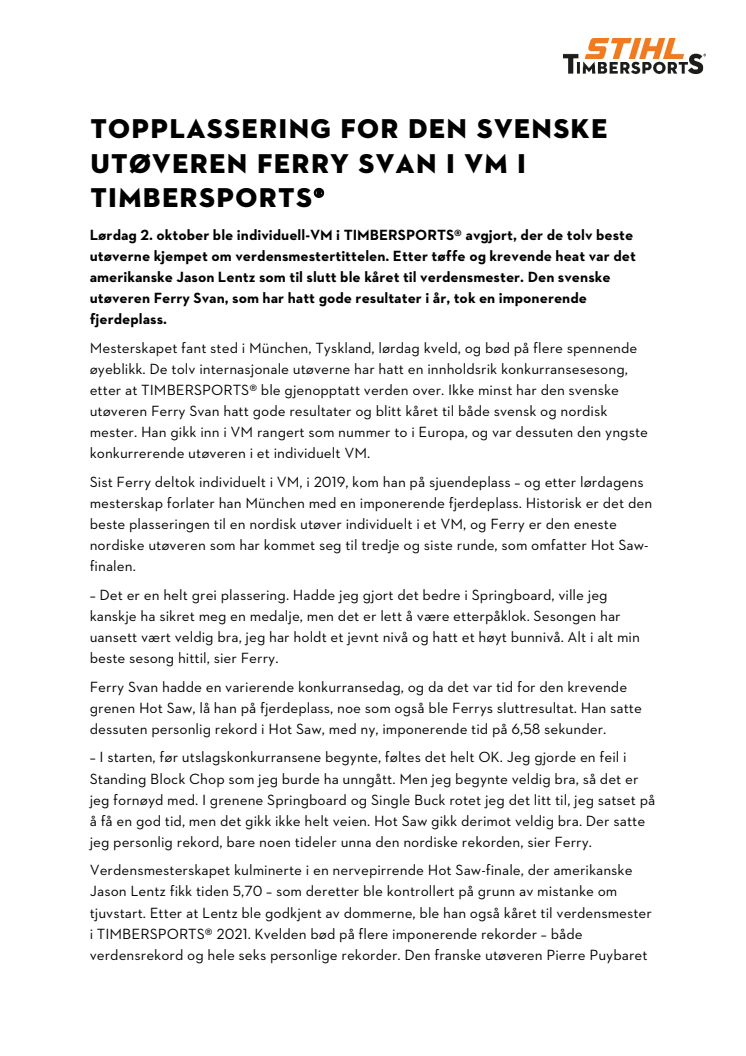 TOPPLASSERING FOR DEN svenske UTØVEREN FERRY SVAN i VM I TIMBERSPORTS®.pdf