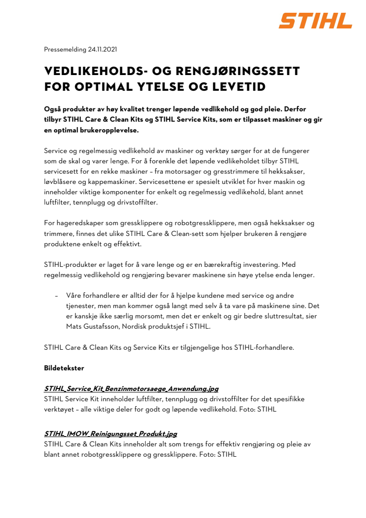 VEDLIKEHOLDS- OG RENGJØRINGSSETT FOR OPTIMAL YTELSE OG LEVETID.pdf