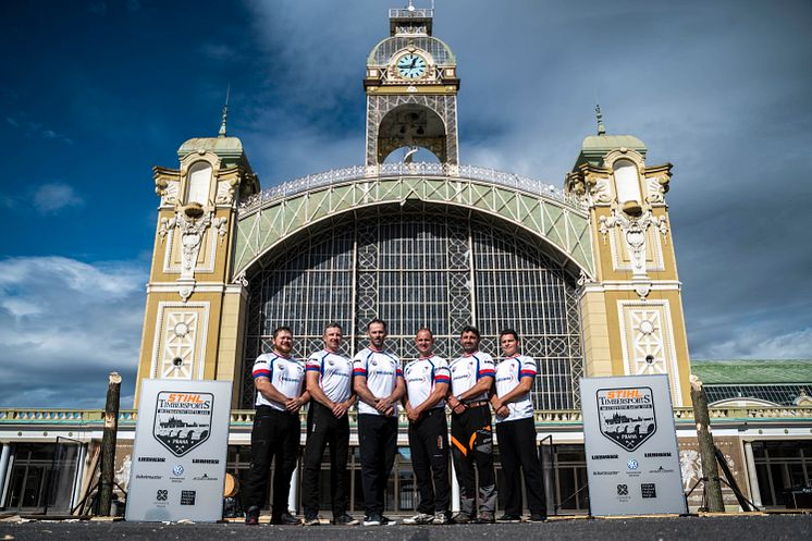 Det tsjekkiske laget foran Industrial Palace, der de er klare for kamp på hjemmebane.