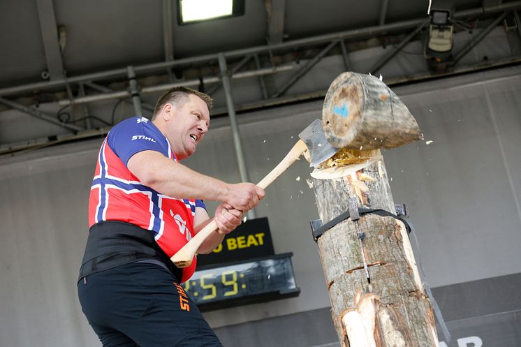 Lierhagen i aksjon med øksa.