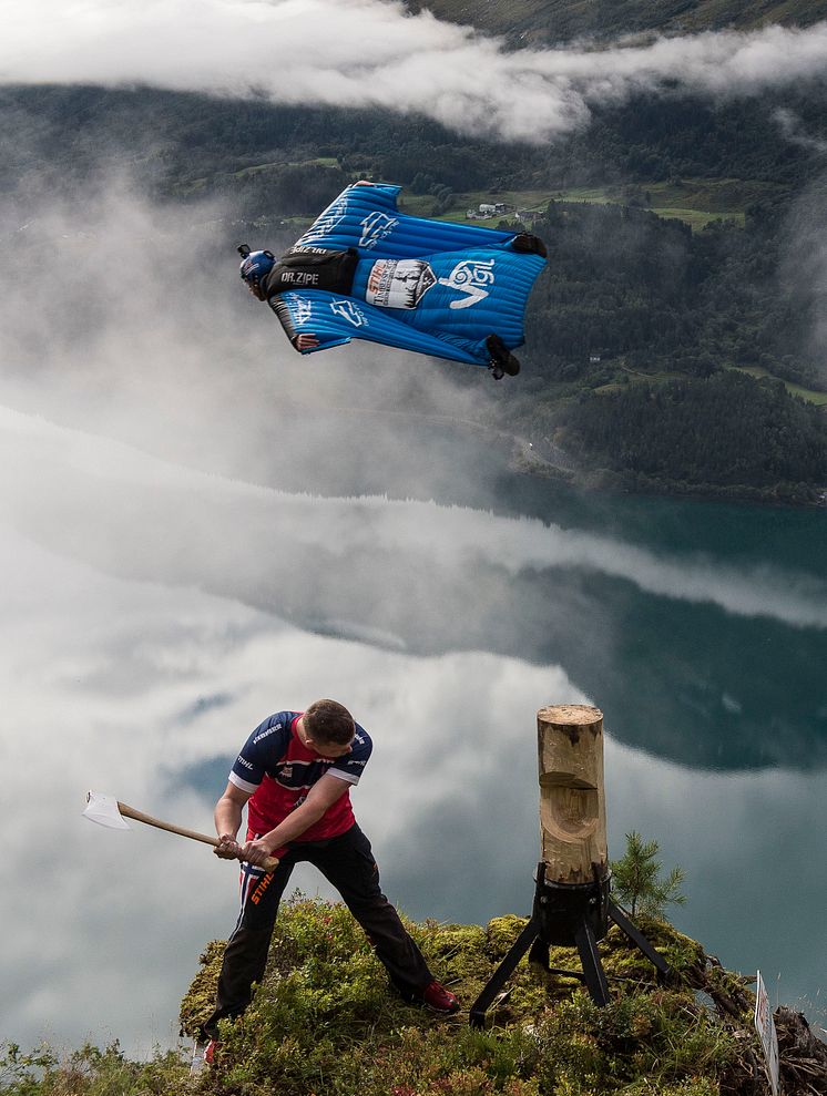 Vebjørn Sønsteby: "Det var ganske nervepirrende da han kom susende gjennom lufta i 250 kilometer i timen. Espen skulle fly så nærme oss som mulig, så han snidda meg og fotografen med bare noen få meter. Da var det bare å holde roen og stole på at Espen hadde kontroll i lufta." Fotokreditering: Joerg Mitter, Limex Images