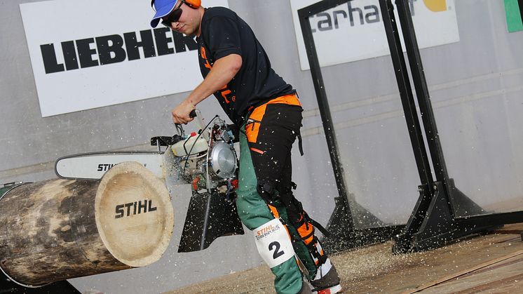 - Vi var vitne til stor idrett under årets nordiske mesterskap i Stihl Timbersports. Noe av utstyret som ble brukt veier 30 kg, og har 80 hestekrefter, forteller Bjørn Sønsteby, ansvarlig for Stihl Timbersports i Norge.