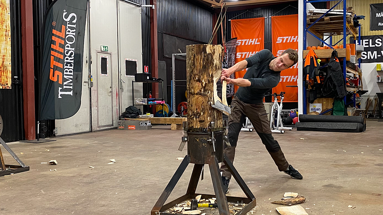 Standing Block Chop utført av den norske PRO-atleten Ole Magnus Syljuberget, som dessuten satte ny verdensrekord i grenen Stock Saw under årets nordiske mesterskap i Sverige.