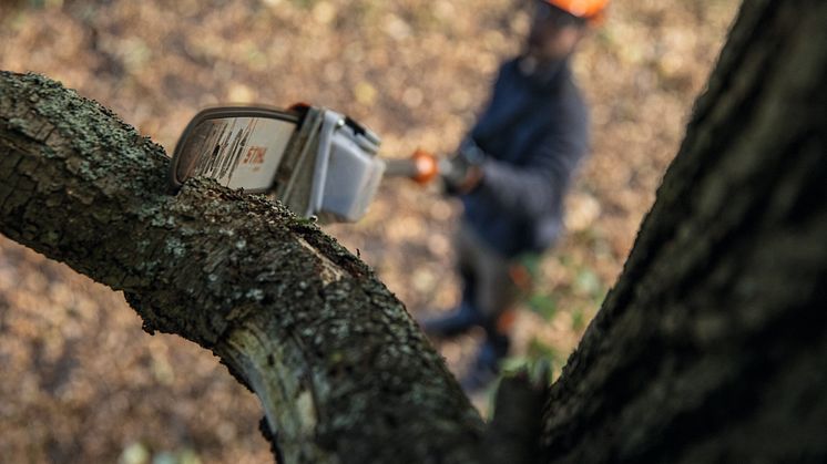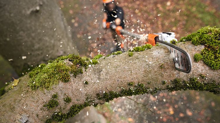 – Målestangen på kjedehjuldekselet gjør at skjæreutstyret kan plasseres i nøyaktig riktig høyde, og grenkroken forenkler fjerning av løse stiklinger fra treet, sier Mats Gustafsson, Product Launch Manager for STIHL Norden.