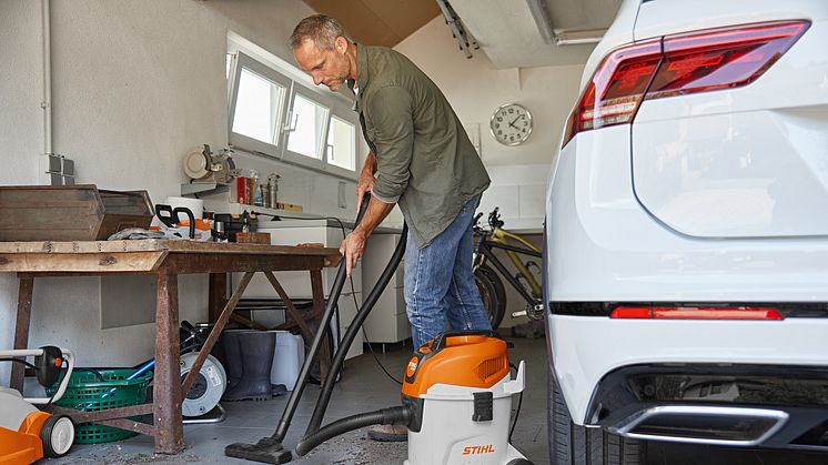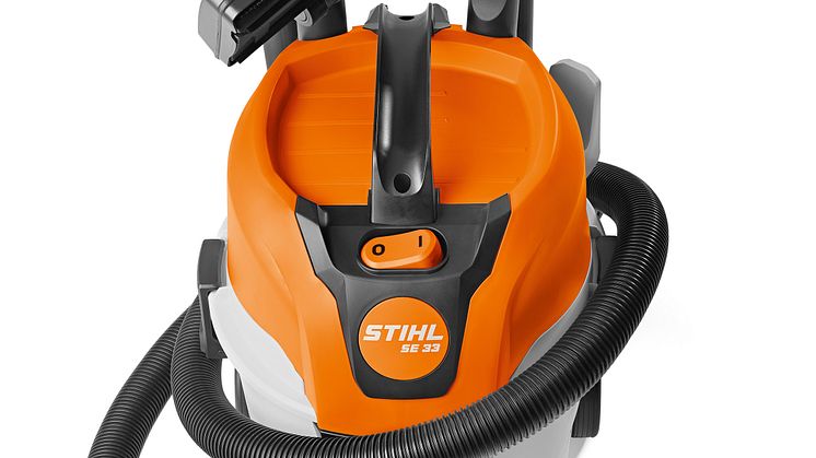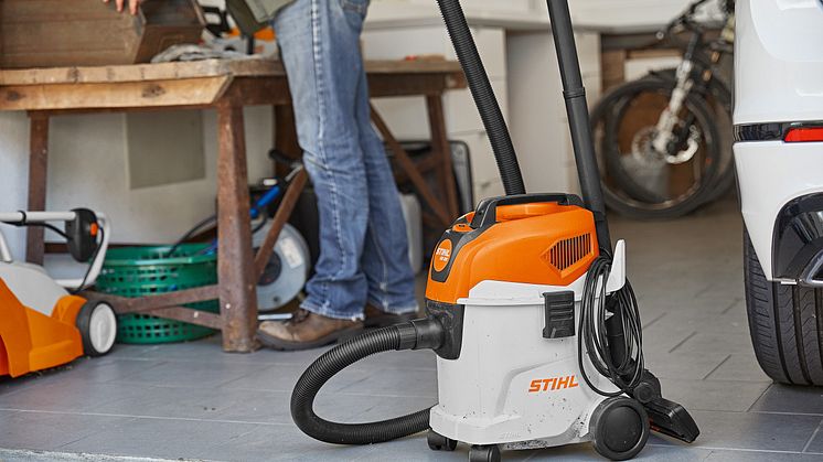 Den nye grovstøvsugeren SE 33 fra STIHL har god sugekraft, men er liten og kompakt, perfekt til rengjøring av for eksempel garasje og bil. Støvsugeren kan brukes på både våte og tørre overflater, og den har en blåsefunksjon som gjør den praktisk til rengjøring av vanskelig tilgjengelige steder.