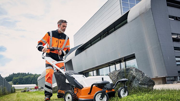 Med den nye effektsterke og batteridrevne proffgressklipperen RMA 765 V fra STIHL er det enkelt å klippe selv store, kuperte områder. Gressklipperens lave lydnivå tillater arbeid på mer sensitive tider på døgnet, som gir enda mer effektive dager for arbeidere.