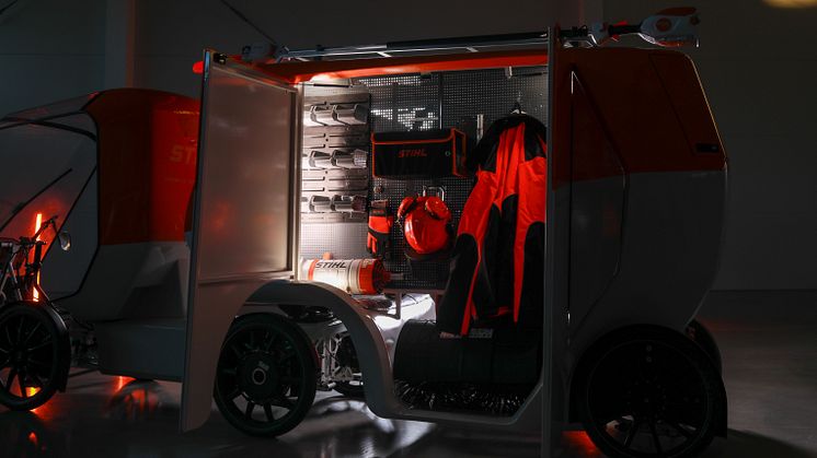 For å møte de økende utfordringene med fremkommelighet i byene og for å styrke ivaretakelsen av grøntarealer, presenterer STIHL Mobile Green Care. Elsykkelen er utstyrt med en praktisk henger som gjør det enkelt å transportere alt nødvendig verktøy og gir mulighet for å lade dem direkte i hengeren.