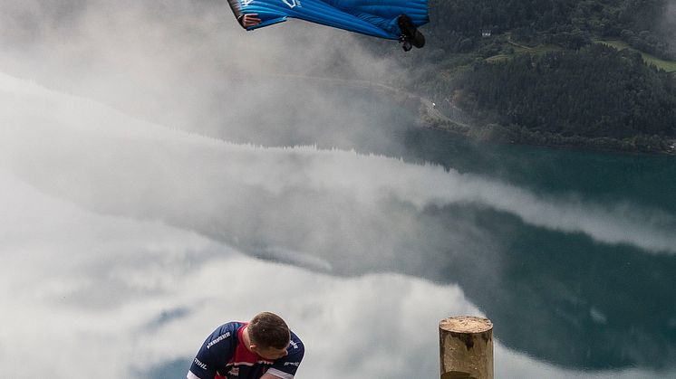 "Det er kult når to typer ekstremsport møtes på denne måten og jeg tror vi fanget et veldig spesielt øyeblikk" avslutter Vebjørn.
