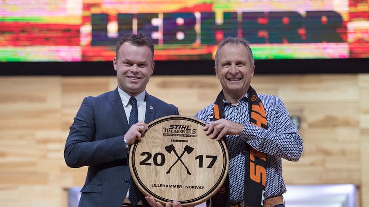 November 2017 kommer STIHL TIMBERSPORTS® World Championship tilbake til Lillehammer og Håkons hall. Lørdag forrige uke tok byens ordfører, Espen Granberg Johnsen, over stafettpinnen fra arrangøren under verdensmesterskapet i tyske Stuttgart.