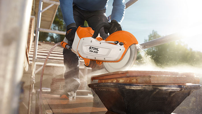 Stihl TSA 230 er en utslippsfri kappemaskin som man kan bruke både inne og ute. Den er standard-utrustet med vannkobling, og har også tilleggsutstyr for å koble til en støvsuger, slik at man sørger for en effektiv oppsamling av støvet mens man kutter.