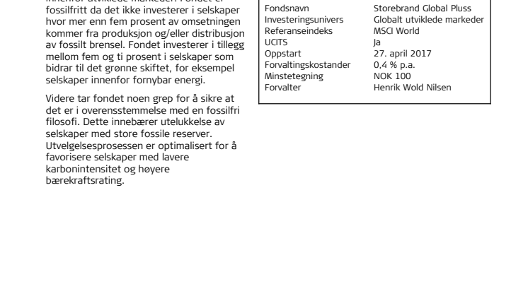 Med dette som bakteppe lanserer Storebrand nå Norges første indeksnære, fossilfrie aksjefond: Storebrand Global Pluss.