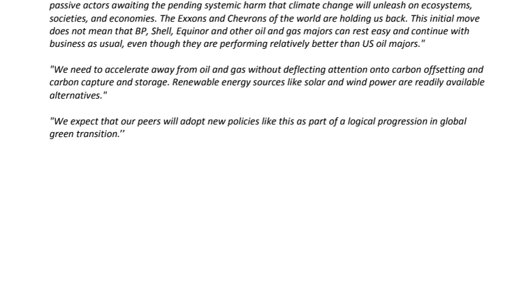 - Exclude companies that actively lobby against the Paris Agreement and climate regulation.