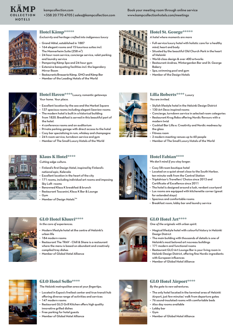 (14.08.2019) Hotellkonsernet Nordic Choice Hotels annonserte onsdag 14. august oppkjøpet av den finske hotellgruppen Kämp Collection Hotels. Den finske hotellkjeden består av elleve hoteller og er markedsleder i luksus- og livsstilsegmentet i Finland.