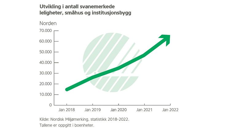 Utvikling i antall svanemerkede leiligheter, småhus og institusjonsbygg
