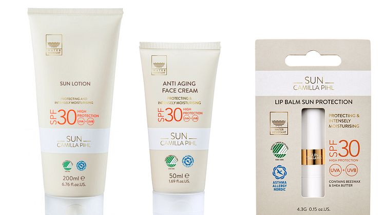 Camilla Pihl har nylig lansert svanemerkede solprodukter. Serien inneholder både solkrem for ansiktet med faktor 30, sollotion til kroppen med faktor 15 eller 30, en stift med spf 30 og en aftersun lotion. Produktene er parfymefrie og selges hos VITA.