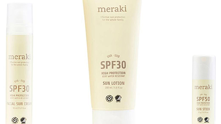 Meraki er en svanemerket solkremserie som består av en ansiktskrem med faktor 30, en lotion med samme beskyttelse og en stift med faktor 50. Meraki selges hos Bolina og andre interiørbutikker. Produktene er parfymefrie.