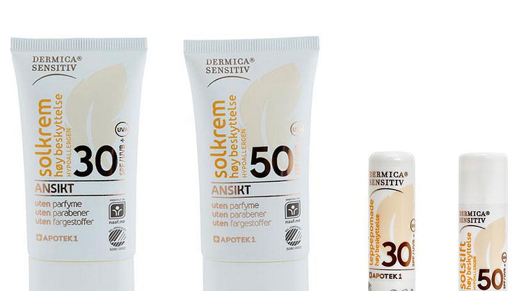 Dermica Sensitiv er en svanemerket solkrem fra Apotek1. Den er utviklet spesielt for sensitiv hud og inneholder verken parfyme, parabener eller fargestoffer. Solkremen finnes i fire varianter: Dermica Sensitiv for ansiktet, med solfaktor 30 eller 50, og Dermica Sensitiv for kroppen, med faktor 30 eller 50.