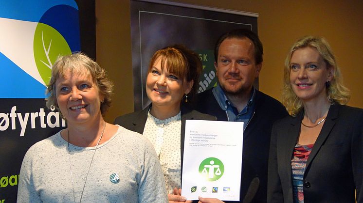 Fairtrade Norge, Miljømerking Norge, DebioInfo og Miljøfyrtårn jobber alle for en bærekraftig vareproduksjon og vil nå styrke sitt samarbeid med veiledning av offentlige innkjøpere. Organisasjonene tilbyr sektoren veiledning for å nå målet om grønnere innkjøp og hvordan anvende anskaffelsesloven.