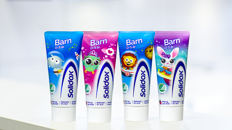 Etterlengtet nyhet for småbarnsforeldre: De populære barnetannkremene fra Solidox har blitt svanemerket. Tannkremene har samme smak som før, og tilfredsstiller nå de strenge kravene Svanemerket har til hvilke ingredienser produkter kan inneholde. Solidox får du kjøpt i dagligvarebutikken.