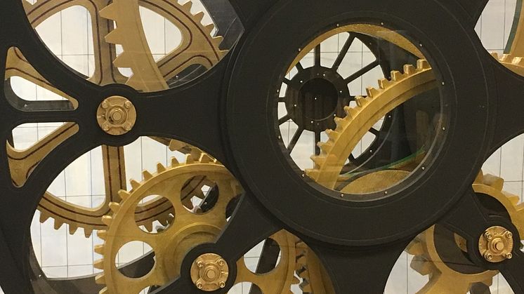 Maling av tannhjul, produsert på Teknisk museum. Tannhjulet kan henges på museumstreet eller tas med hjem.