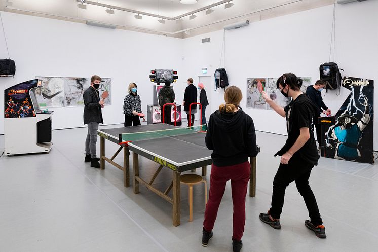 Interaktiv utstilling med arkademaskiner, bordtennisbord, skulpturer og malerier. Utstillingen er støttet av Norsk kulturråd. Vicente Mollestad er også mottager av Skien kommunes kunstnerstipend 2021.