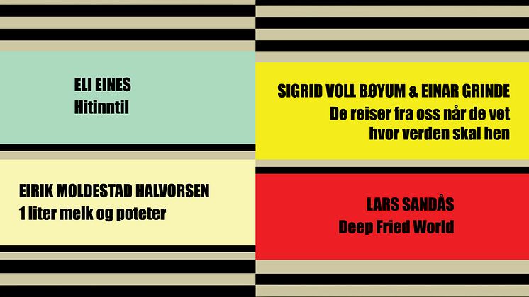 TKS har gleden av å invitere til fire separatutstillinger av kunstnerne Eli Eines, Eirik Moldestad Halvorsen, Lars Sandås og kunstnerduoen Sigrid Voll Bøyum & Einar Grinde.