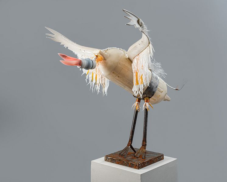 Arbeidene som vises, er en serie skulpturer som hun med stor omsorg og unike håndverksmessige evner har utformet av funne objekter, søppel og skrot. Temaet resonnerer internasjonalt med kunstnerskapet til for eksempel Chris Jordan, og hans pågående kunstprosjekt Midway: Message from the Gyre (2009–).