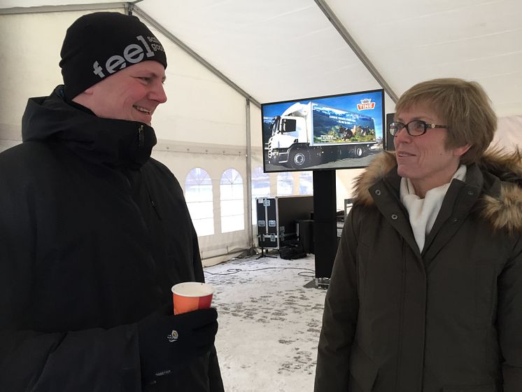 Samferdselsminister Ketil Solvik-Olsen og konsernsjef i TINE Hanne Refsholt