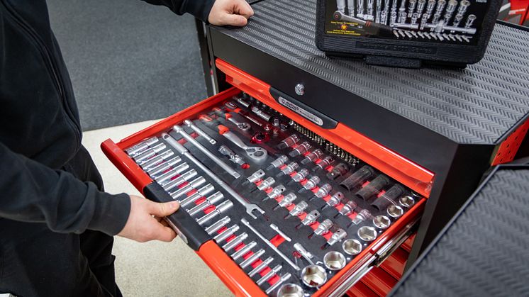 – Her har hvert eneste verktøy en egen plass med optimal passform, og alt er merket etter størrelse. Da er det superenkelt å holde utstyret komplett.