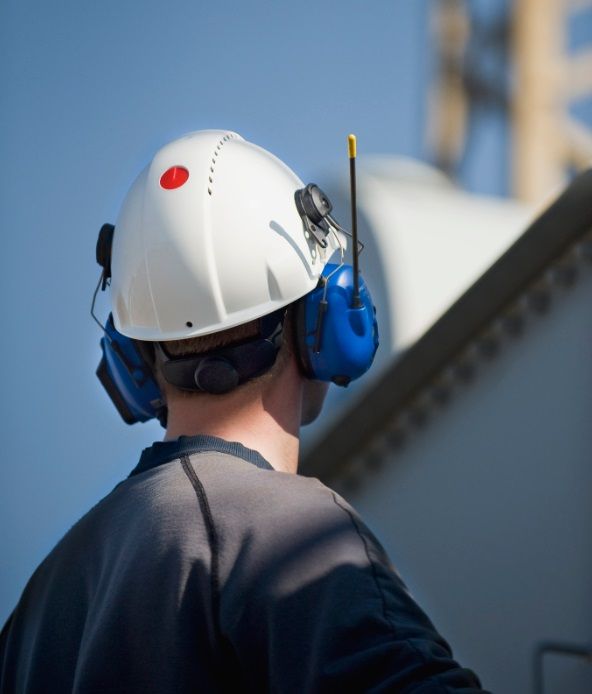 Peltor har en UV-indikator (rødt merke) på mange av sine hjelmmodeller