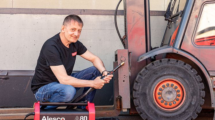 — Alesco A80 er perfekt for bil, så den finner man gjerne på en god del bilverksteder, i tillegg til andre mekaniske verksteder og i industrien, sier Olafsen.