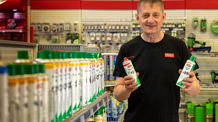 — Det første man bør prøve er en penetrerende rustløser, sier Olafsen, og trekker fram en boks fra CRC.