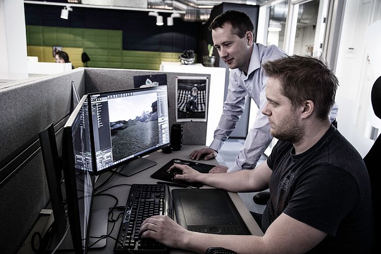 Trainor designer og utvikler opplæringsløsninger for offshore, maritim og landbasert industri. Her ved avdelingsleder for E-læring Stian Martinsen, og multimediadesigner Tommy Fjelldal.