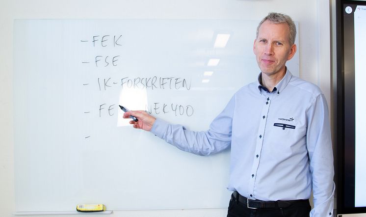 Hans Olav Arnesen underviser i forskrifter og normer. Han underviser blant annet kandidater som skal opp til Elektroinstallatørprøven.