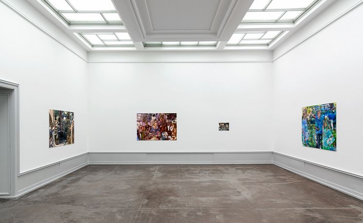 Kira Wager, «Laxå 1.1», 2020-21, 100 x 150cm, oil on PVC; «Ulla 1.1», 2020-21, 100 x 147.5cm, oil on PVC; Vellxon,2.I,28,x38cm; «Lillehammer 1.1», 2020-21, 109 x 145, oil on PVC.