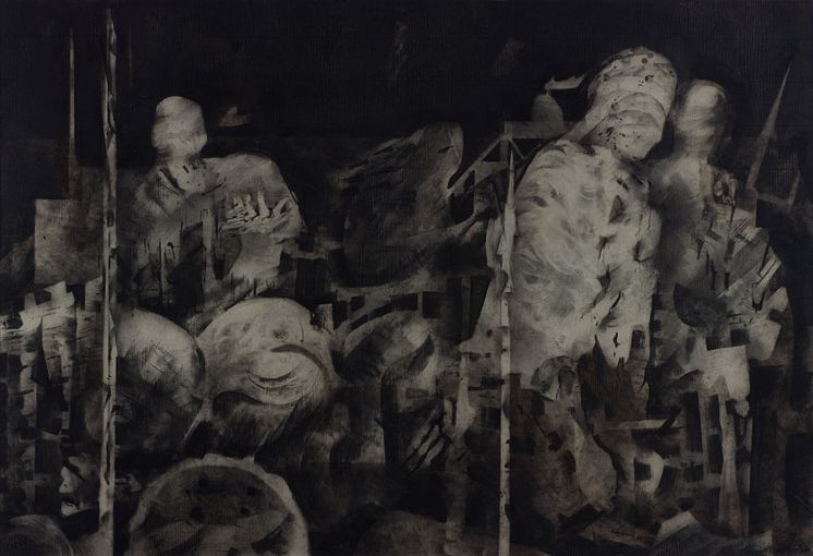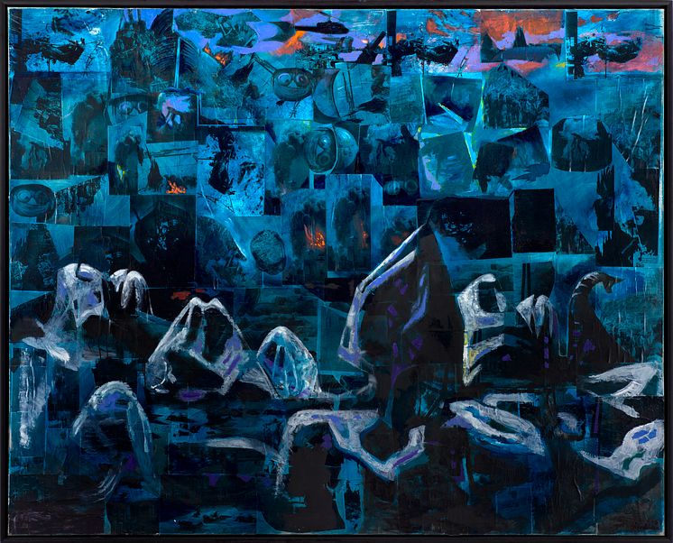 Utstillingen viser dette verket i dialog med Håkon Blekens malerier som knyttes til blant annet IS og tragedien på Utøya i 2011, samt kulltegninger fra hans definitive gjennombrudd på 70-tallet Fragmenter av et diktatur.