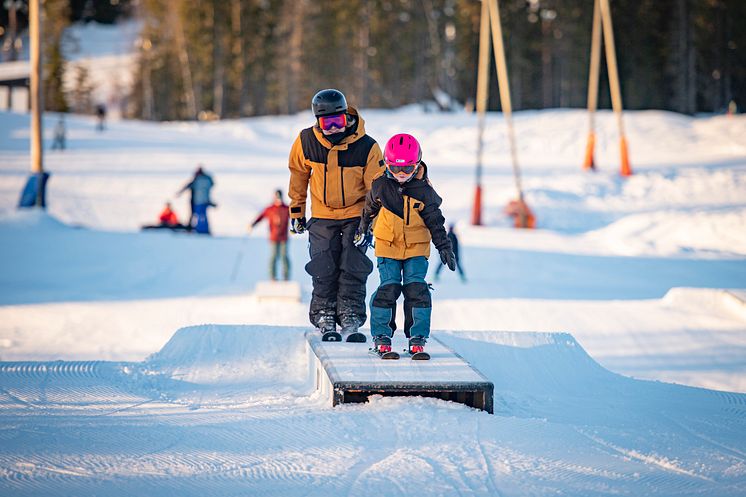 - Barna er våre viktigste gjester i skianlegget. Hvis de har det gøy, så har også de voksne det bra, sier Gudrun Sanaker Lohne, destinasjonsleder i SkiStar Trysil. Her leker Anders Backe og datteren Anna seg på ski i barneområdet i Trysil.