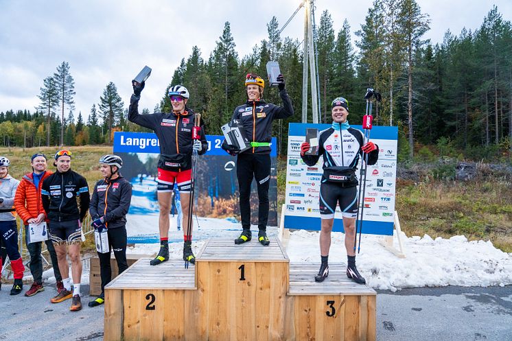 Johannes Høstflot Klæbo på førsteplass, Pål Trøan Aune på andreplass og Morten Skinstad på tredjeplass under årets Coop Trysil Rulleskisprint.