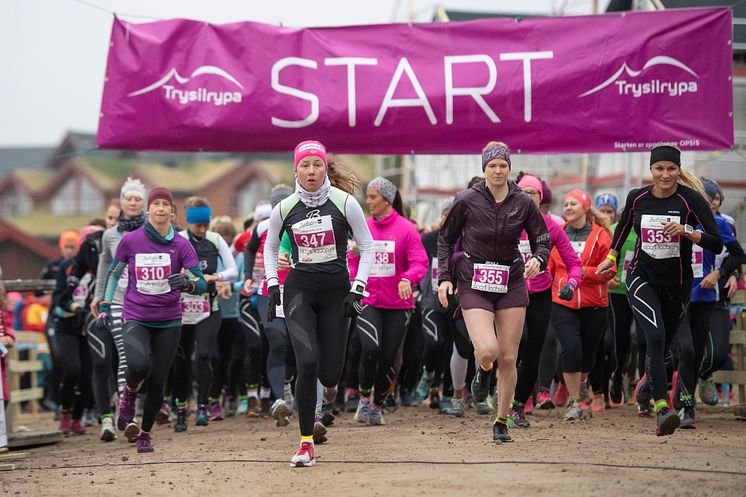 Her går starten på 6 km løp. Startnummer 355 er Abelone Lyng, rypeambassadør og vinner. Nummer 347 er fjorårets vinner av distansen, Liv Tone Heramb.